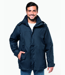 Polyester mesh body lining. Polyester sleeve lining. Waterproof with taped seams. Detachable mesh lined hood with stud closure, toggles and visor. Fleece lined collar. Collar high full length zip with studded storm flap. Three front zip pockets. Adjustable tear release cuffs. Drawcord hem. Zip access for decoration. Zip out polyester fleece jacket. Collar high full zip. Open cuffs and hem.